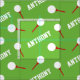 Golf bollar på T-idrotten: personlig grönt mönster sport design tyg. Vit golf bollar på röda golfplattor med grasslig grönt färg som kan ändras om så krävs. Perfekt för golfbanor och golfbanor fläkt. Anpassa med ditt eget val av namn, läser Anthony. Konst och designad av Sarah Trett.
