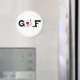 En fin golfdesign med stor svart text som lyder "Golf" med "o" som golf boll, "l" som en golf-klubb! Denna unika golfdesign finns på golfbanor, t-tröjor, mugg, tote bags, kort, klistermärken, nyckelkedjor och andra artiklar.