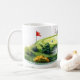 Start your day with a touch of the fairway. This elegant golf putting green coffee mug features a beautifully painted watercolor scene with a smooth green, classic red flag, and serene country club atmosphere.