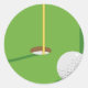 Illustration av en golfande grönt med hål i marken och ett golfredo i boll att knacka in. Bild finns tillgänglig på olika presenter och produkter. Stickers.