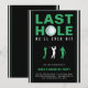 Fira brudgummens sista sving innan ringen med denna gröna, svarta och vita golfinspirerade pojkavaktsinbjudan. Designad med frasen "Sista hålet han någonsin kommer att träffa", sätter denna inbjudan tonen för en rolig golftur eller pojkavaktshelg. Perfekt för att samla vänner för att toasta brudgummen, är det ett bra sätt att kicka igång firandet. Anpassa med brudgummens namn, evenemangsinformation och festlokal för en personlig touch!