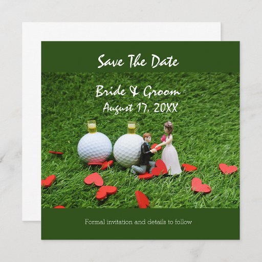 Golf Spara datum brud och brudgum namn på grön Inbjudningar