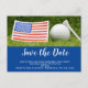 Golf sparar datumet med golf boll och USA flagga Vykort