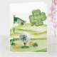 "Skicka lyckliga önskningar till din favoritgolfare med detta St. Patrick's Day golf-tema kort! Med festliga shamrockar, en golfboll på greenen och en flagga, är detta kort perfekt för att fira högtiden med en sportig twist. Bra för golfälskare och turneringssouvenirer!"