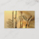 Golfklubbar och järn i en golf hänger lös på en visitkort.