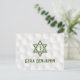 Tackkort för Bar Mitsva med golf-tema med bakgrund av golfboll och accentuerad med grönt gräs. Detta tackkort för Bar Mitsva med golf-tema är stilrent och modernt. Kortet har en subtil prägling av golfboll med Davidsstjärna och golfikon. Färgerna i denna eleganta design för Bar Mitsva med golf-tema är vit och grön. Din sons namn är i en fet font.
