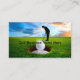 Scenska golfaffärskort i en smart konstruktion med golfsilhuett och golfplatta boll i hål mot ett vackert himlar. Designad för alla som gör golflektioner, golfträning, säljer golfutrustning och golfartiklar, eller en golfwebbplats.
