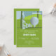 Denna fantastiska inbjudan till golfarrangemang har en fantastisk bild av en golfspelare och en stor golfboll med texten golf framför en fantastisk grön kulle i bakgrunden – perfekt för alla golfälskare eller golfklubbar där ute!