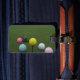 gult rosa och vit, ljusstark färgad Golf Bollar på ett golfbanefoto från Sandy Closs, som tas i Sjö Arrowhad. Golf, golfer, golfbanor, golfgrodor, vår, sport, påsk, helgdag, påskägg, rosa, golferblått gult, kaninägg