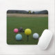 gult rosa och vit, ljusstark färgad Golf Bollar på ett golfbanefoto från Sandy Closs, som tas i Sjö Arrowhad. Golf, golfer, golfbanor, golfgrodor, vår, sport, påsk, helgdag, påskägg, rosa, golferblått gult, kaninägg