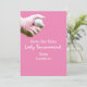 Golfboll är i kvinnlig golfares hand på rosa inbjudan