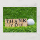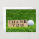 Golfboll med orden tack på grönt gräs vykort