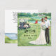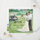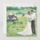 Golfbröllop med brud och brudgum i klubbhuset spara datumet