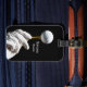 Golfer håller boll på redo för att ta bort bagaget bagagebricka
