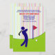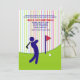 En roligt som har en golfsilhuett på grönten mot en färgstark strimlad bakgrund. Passar för både gender och ålder.Kortet är enkelt att anpassa med din ordalydelse, ditt teckensnitt, ditt teckensnitt, färg och ditt val av sex papprare typer.