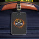 Den här snyggtens personlig bagagetapp är avsedd för golferer och har ett monogram på ena sidan och namn, mobilt nummer och e-post adress på andra sidan. Alla dessa kan anpassas med din egen information. Den moderna konstruktionen är en golf-boll och golf-klubb med initialer omgiven av en orange och gult-eld ring på svart. Detta är en särskilt perfekt gåva till den levande golfer som också är resenär så att de kan använda denna anpassningsbar märkre på sitt bagage.