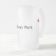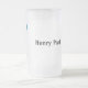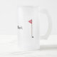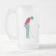 Personlig golfer, med hylsa, röd skjorta och blå byxor, som lägger en golf boll i en hål-design, frostat öl mugg.