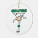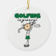 En kvinnlig golfer i stick figur med klubb och text som lyder "Golfing is Groovy" på golfbanor, hoar, mugg, magneter, kort, klisterlappar, muspekare, nyckelkedjor, vattenflaskor med mera.
