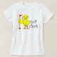 Golfing-chick i glanstext med en gult chick som håller en golfklubb och flagga i en golf hål är en lustig presentdesign för golferer.