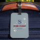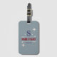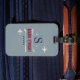 golfklubbar, namn och initial på grått monogrammat bagagebricka