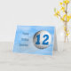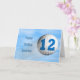 Ett underbart roligt kort för golfer eller golf tillfälle. En golf boll som flyger genom luft med tolv skrivna på den.