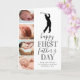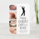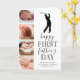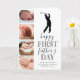 Söt ny pappa fars dag-kort med en enkel vit bakgrund som kan ändras till valfri färg, en 4-foto collage av ditt barn, en golfspelare siluett, texten "grattis på första fars dag", och en pappa-text som enkelt kan anpassas.