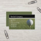 Golftemavisitkortar med avbildar av en golfbollcloseup på en utslagsplats och en enkel orientering som du kan skräddarsy direktanslutet. Designat för en golf shoppa, golfinstruktören eller det on-line golftillförsellagret.