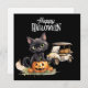 Golfvagn med svart katt för Halloween-dagen Julkort