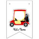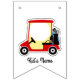 En röd guld-vagn synlig på sidvägar, kompletterad med påsar och klubbar, utan människor, vit kontur runt "dekal stil"
