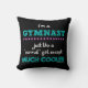 Den ROLIGA gymnastikdekorativ kudde med texten, "undantar jag förmiddagen en något liknande för GYMNAST… precis "en det normala" flickor MYCKET KYLARE" ©gollygirls.com