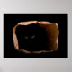 Svart katt Gömmande i Shadows of a papper bag, on black bakgrund - a spooky, coola, överraskande image for your wall!