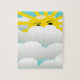 GULT SOL ANSIKTE GÖMMER BAKOM VITFLUFFY CLOUY