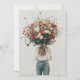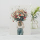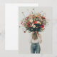 En person som är klädd i avslappnad jeans och en vit topp har en enorm bukett av vilda blommor som helt fördunklar deras ansikte. Den stora, färglösa arrangemanga av daisy, vallmo och andra vibrerande blomningar står i kontrast till den minimalistiska bakgrunden och attityden, som skapar en slående bild som betonar naturens skönhet. Scenen visar en känsla av stollig och lugn, eftersom blommorna går i centrum och symboliserar tillväxt, liv och enkelhet.