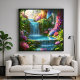 Artverk av ett gömt ställe med vattenfall, blommor och löv. Den här fantastiska teckningen fångar kärnan av ett isolerat paradis, där översvämmade vattenfall tumlas in i kristallklar bassäng, omgiven av en explosion av fantastisk flora i strålande rosa, lila och blått. Den stora och exotiska blomningen skapar en känsla av fred och lugn och uppmanar er att förlora er i detta orörda hörn av naturen. Ta in den här gömt tomtens lugnande kraft i ditt hem och skapa din egen fristad. Varje blomma är en ren fantasi, från ömtåliga liljor till strålande blommar. Perfekt för att lägga till en aning och en stänk för att fånga färg i vilket rum som helst. Biet kan anpassas, skrivas ut och hämtas.