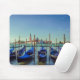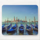 Målning av gondolas pier row förankrade foto på Canal Grande med San Giorgio Maggiore-kyrkan i bakgrunden, Venedig, Italien. Parkerad gondolas på Piazza San Marco.