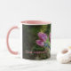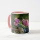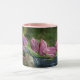 Guten Morgen mit rosa Tulpen vor grüner Natur