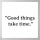 Embrace the beauty of patience and progress with this “Good Things Take Time” minimalist typography poster. Its clean design and balanced message make it the perfect piece to bring calm motivation into your space.