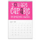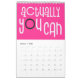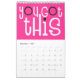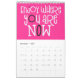 Bra visar en kalender med ett positivt budskap för varje månad på året i fet, tyst typografi. På framsidan och baksidan finns en färger av regnbågens bakgrund med rosa och svart funky, och i bakgrunden är färg genomgående i shock rosa med vit typografi med shock rosa och svarta högdagrar. Du kan ändra färgen för bakgrunden till shock rosa om du vill det via alternativet Klicka för att anpassa ytterligare.