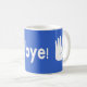 Berömd blåttbakgrund med "GoodBye!", utskrivavet i vit & enkelt vinka för vit räcka.