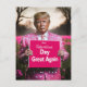 En humoristisk bild med en välkänd figur, Donald Trump, klädd i en rosa hjärttäckt kostym och med en skylt som lyder "Gör alla hjärtans dag Underbar igen". Den här leksaken är uppbyggd mot en scenisk bakgrund av rosa blommor och kombinerar alla hjärtans dagsteman med en politisk tvist, som blandar romantik och satir.
