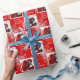 papper omslagning av elegant har röd bakgrund med snöflingor i hörnen och 2 ramar för att infoga dina egna favoritfoton i familjen. Texten säger Merry All, men du kan ändra det till vad du vill. Innehåller även en ställe som ska placeras i namn. Den här pappra fotomappningen skulle vara en så vacker överraskning för vänner, familj och kära!