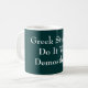 En mörk turkos mugg med "grekiskt Studenter do it with demosthenes" i vit text. Demosthenes var en orator i det klassiska Grekland. Han skrev till tal för rättegångar. Generellt sett kommer alla student i den grekiska lagstiftningen att ha läst en del av sitt arbete, och vissa som lär sig det grekiska språket kommer också att göra det, kanske till och med översätta en del av det! Mugg är bra för alla som studerar grekiskt eller gammalt Grekland.