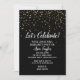 Detta Låt oss firar Guld Confetti på Black Bachelorette Party-inbjudan är perfekt för att hedra den blivande briden. Utformningen har trendig faux guld glitter konetti och elegant white calligraphy på svart bakgrund.