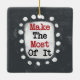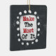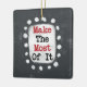 Fetstilen "Gör det mesta möjliga av det" centreras mot en grått-bakgrund. Den svarta texten sitter på en vit rektangel med stora texturerade vita punkter runt den, vilket ger en lekfull kontrast mot den heltäckande bakgrunden i färg.
