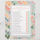 Denna mall för bröllopsfest innehåller spelet "gissa vem som är brud eller brudgum", med 14 redigerbara ja- eller nej-frågor. Valfritt foto på baksidan. Anpassa all text, ta till och med bort "B" och "G"-cirklarna för att skapa en version av spelet där man fyller i svaren. När du är i redigeraren kan du ändra hela spelets titel och frågor, inklusive typsnitt, färg, storlek, bakgrundsfärg och till och med storleken på blommorna för att matcha ditt evenemang.