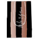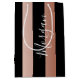 Personalisera ditt namn vertikalt i stor vit skrivstil, (meddelande eller företagsnamn) på vertikala Rose Guld och Svarta Ränder.