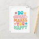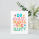 Omge dig själv med glädje och positivitet med det här härliga vykortet "Gör det som gör dig Lycklig", accentuerat av söta, färgstarka blommor. Denna trevliga, motiverade teckning är en försiktig påminnelse om att ta till sig det som ger dig glädje, jaga dina drömmar och prioritera självvård. En underbar gåva till medvetenhet om psykisk hälsa, personlig tillväxtentusiaster eller någon som behöver lite daglig inspiration.