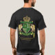 Skapa ditt mycket egna aristokratiska Jacka av Arm, Emblem, Insignia eller Family Crest med den här vackra, klassiska eskort- eller sköldesignen. Mörk grönt mönster dekorerar en sköld som fylls med ett gyllene krona och som flankeras av medeltida heraldiska örnar. En matchande översta banderoll innehåller ditt personligt bröllp-datum/födelsedatum/slogan eller strid gråter. Skölden har plats för ditt monogram initialer. Grund banner bär din familj namn. Det finns också utrymme nedan för ditt favoritcitat, motto eller meddelande. Ersätt exempeltexten med en egen personlig. En könsneutral utformning som kommer att fungera för familjer, grupper, par eller individer. Gör en underbar gåva till Bröllop, årsdag, födelsedag, Pension, befordran, Far, Bachelor Party, Möhippa, Studenten, Heraldry Day i Internationell, medeltida eller Fantasy-temerade party och andra specialtillfällen.
