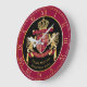 Skapa din mycket egen aristokratiska Jacka av Arm, Emblem, Insignia eller Familjekort med den här vackra, klassiska eskort- eller sköldesignen. Crimsonrött mönster dekorerar en sköld som är täckt med guldfärgat krona och täckt av medeltida heraldisk lejon eller griffin. En matchande översta banderoll innehåller ditt personligt bröllp-datum/födelsedatum/slogan eller strid gråter. Skölden har plats för ditt monogram initialer. Grund-banderollen bär din familj namn. Det finns även utrymme nedan för ditt favoritcitat, motto eller meddelande. Byt ut exempeltexten mot en egen personlig. En könsneutral utformning som kommer att fungera för familjer, grupper, par eller individer. Gör en underbar gåva till Bröllop, årsdag, födelsedag, Pension, marknadsföring, Far, Bachelor Party, Möhippa, Studenten, Internationell, Heraldry Day, Medieval eller Fantasy-temed party och andra särskilda tillfällen.