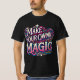 Snyggt och inspirerande T-shirt-design med frasen "Gör din egen magi" med elegant-typografi och subtil magisk inslag. Perfekt för att lägga till en aning positivitet och kreativitet till din gardin.